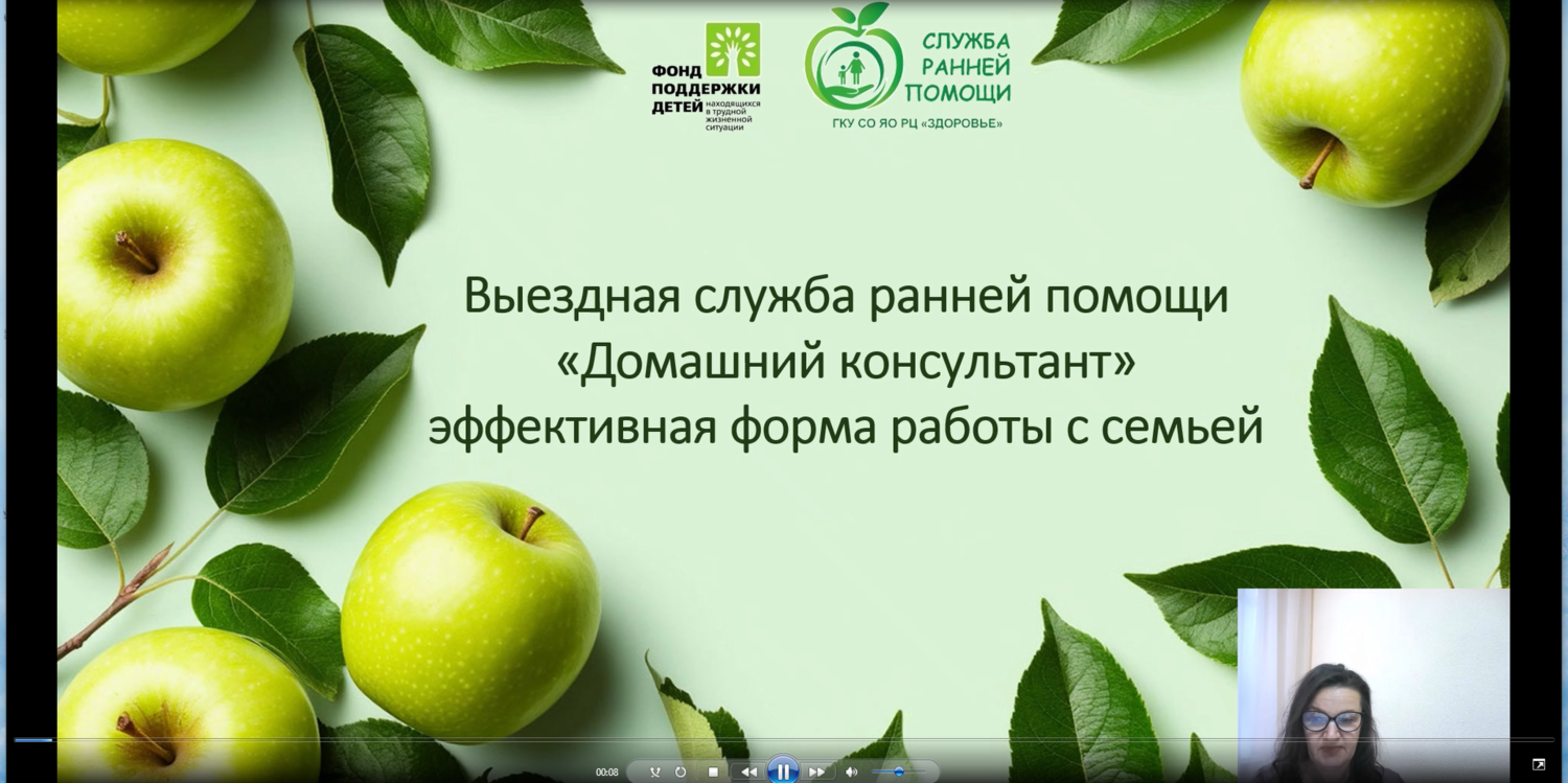 Спикер ГКУ СО ЯО РЦ «Здоровье» Хрящева Альбина Геннадиевна представила опыт работы по теме: «Выездная служба «Домашний консультант» как одна из эффективных практик создания условий для включения семьи, воспитывающей ребенка раннего возраста с нарушениями развития или риском их возникновения в комплексную систему абилитационной помощи в домашних условиях», рассказала о подходах и методиках работы и о планируемых результатах деятельности службы «Домашний консультант».