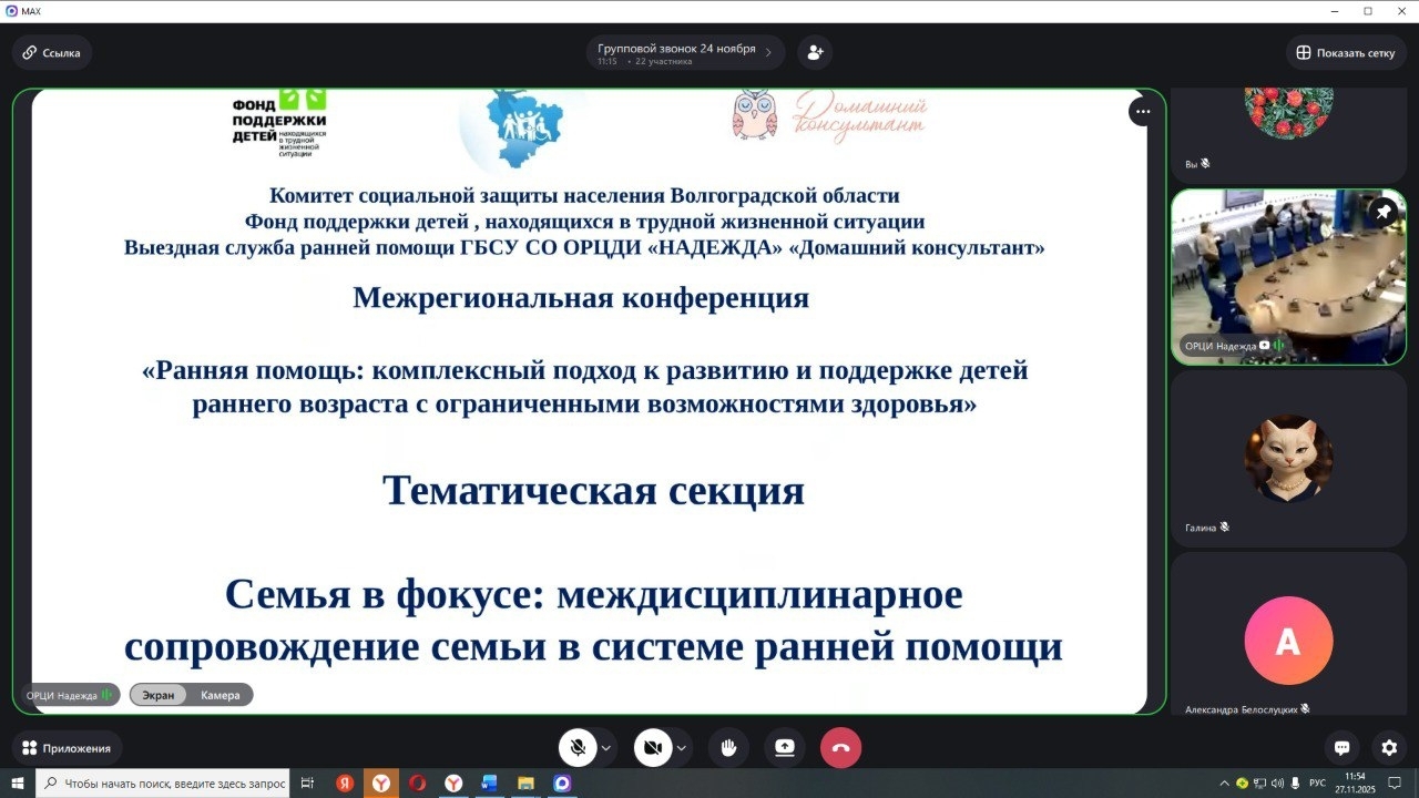 27 ноября 2025 года специалисты реабилитационного центра «Здоровье» приняли участие в работе Межрегиональной конференции «Ранняя помощь: комплексный подход к развитию детей раннего возраста с ограниченными возможностями здоровья и поддержке их семей», организованной Комитетом социальной защиты населения Волгоградской области и ГБСУ СО ОРЦДИ «Надежда».